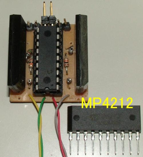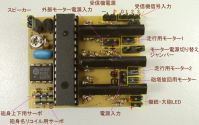 今回、一番苦労したのは、これの設計です....(^^;; MP4212を制御するのに、24ピンのPIC16F873Aを使ったのと、MP4212×3個をいかにコンパクトに配置するか..... さらに、DC-DCコンバータが表面実装用のパーツでパターンの設計が厄介....と.. サイズは、何とかタミヤの1/35ラジコンタイガーに収まる(モーターギアボックス・電池ボックスはそのままで)程度に..を目標に、47mm×38mmまで小さくしました....いや、ホント苦労したぁ(笑) | ![]() |