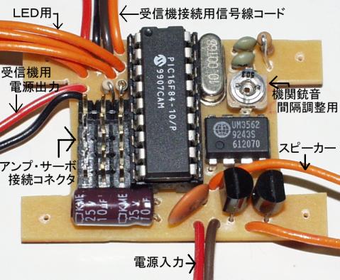 4.8V 入力:4ch 出力:5ch+音2種類(大砲音と機関銃音)+LED2個 スピーカー・LED・電源スイッチ・バッテリー接続コネクタ・受信機接続コード付き |