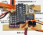 4ch受信機と接続して、5個のサーボ又はアンプと、コンバットサウンドの大砲音と機関銃音、LED2個の制御が出来ます。 受信機は含みません。 基板サイズ 30mm×30mm(高さはコネクタ無しで15mm) サンプルとして、このホームページのNo.14に出ているプログラムの改造版→「t1e.asm」を焼いたPICをつけます。 | |||