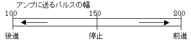 前進後進用に、左右のモーターを別々のアンプでスピードコントロールしてますが、停止するときは二つのアンプに中間点の150を送って止めてます。 逆に、アンプ側でも、150でモーターがピッタリ停止するようにポテンショメーターで調整しておく必要があります。 ![]() 厄介なのは、サーボバラシのアンプを走行用に使った場合、停止位置の調整がピンポイントで微妙なうえ、せっかく調整しても、走行中に若干ずれてきます。 走行用アンプが一つの時は、それでも何とかなりますが、左右2つ使用していると、2つのうちどちらかが走行中にずれてくると、停止させたつもりが片側だけ微妙に動いてしまう状態になります。 こうなると、ショッチュウ2つのアンプの停止位置を調整しながら走らせなければならなくなります。 これが結構面倒なので、プログラムで何とかならないか....と、考えたわけですが.... | |