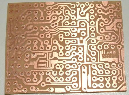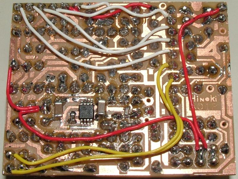今回、一番苦労したのは、これの設計です....(^^;; MP4212を制御するのに、24ピンのPIC16F873Aを使ったのと、MP4212×3個をいかにコンパクトに配置するか..... さらに、DC-DCコンバータが表面実装用のパーツでパターンの設計が厄介....と.. サイズは、何とかタミヤの1/35ラジコンタイガーに収まる(モーターギアボックス・電池ボックスはそのままで)程度に..を目標に、47mm×38mmまで小さくしました....いや、ホント苦労したぁ(笑) | ![]() |